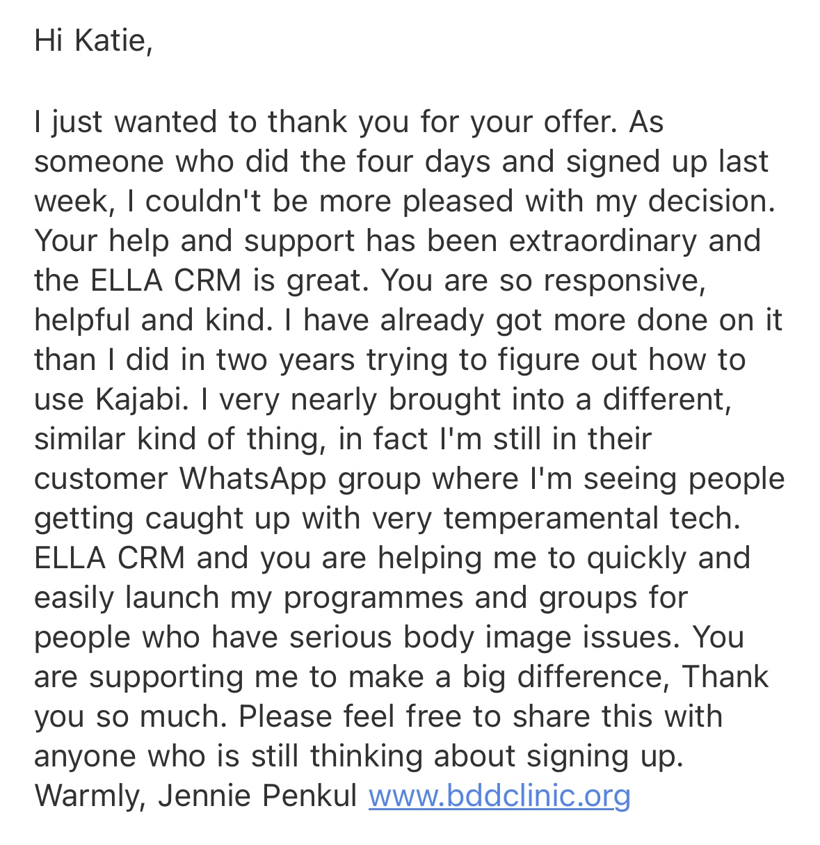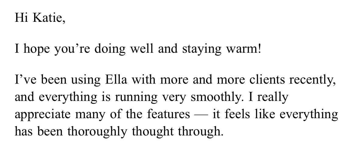 "Ella gave me back time, clarity, and actual excitement about my using my backend system."